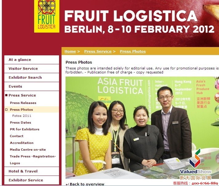 新天會展帶團(tuán)人員(右一)與主辦方工作人員合影 圖片來源:柏林果蔬展官方網(wǎng)站